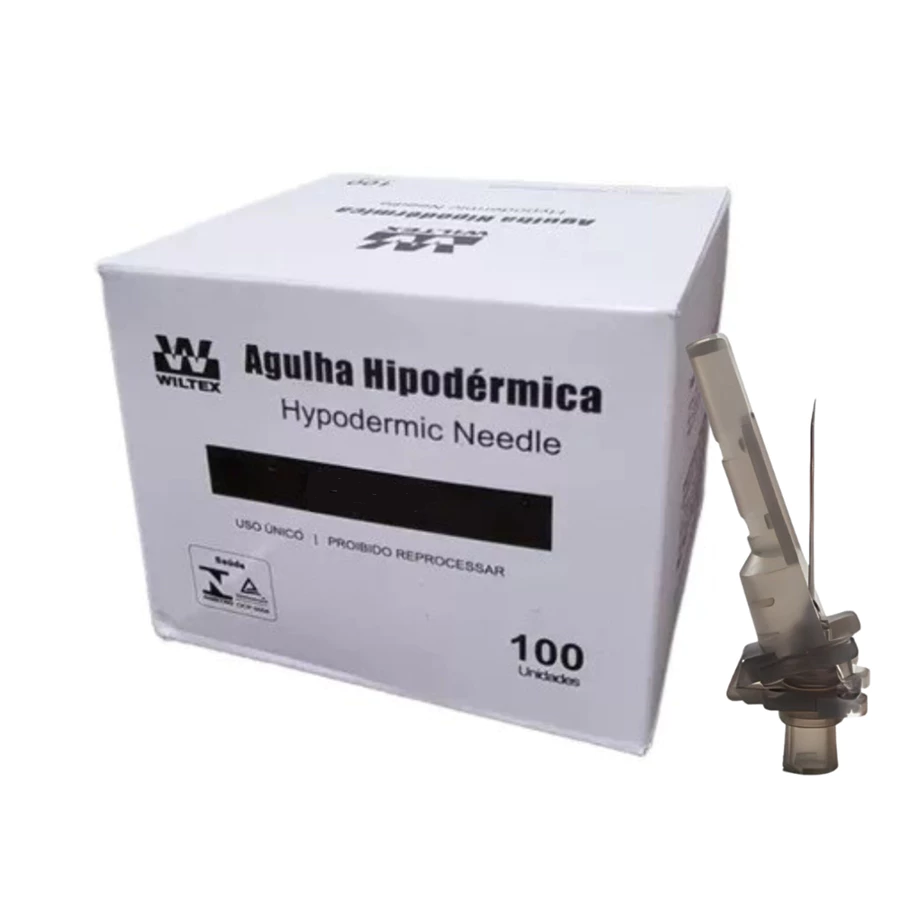 Agulha Hipodérmica com Dispositivo de Segurança da Wiltex, para utilização em seringas, siliconizada para melhor deslize e menor dor do paciente.